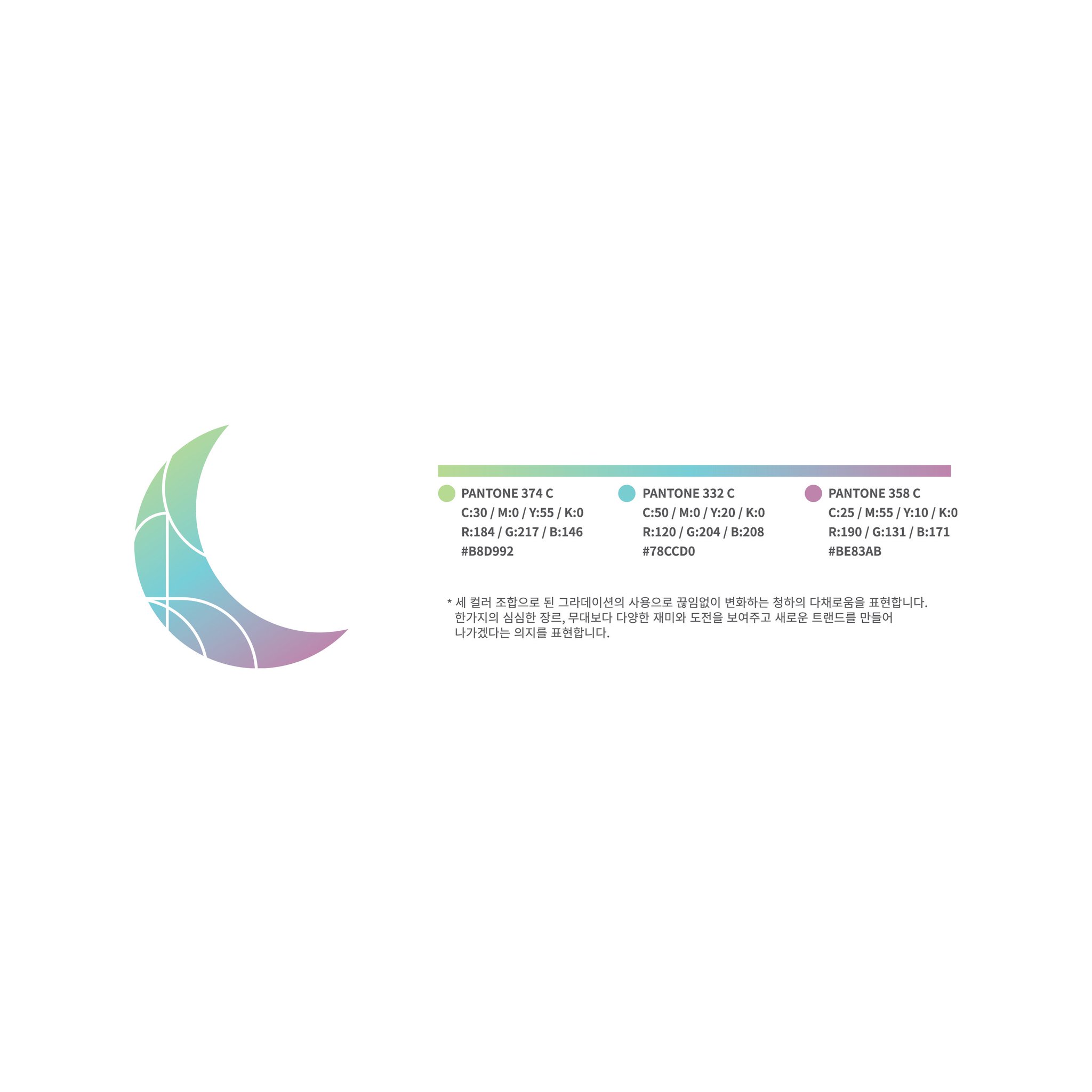 The official logo is a shape of a crescent moon in multiple colors with her name in a unique shape. Her name is written all over the neck of the lightstick and the way the light shines at the logo looks elegant. Taking chungha's official colors, and her signature logo which includes a crescent and a star, the lightstick turned out beautiful and elegant.